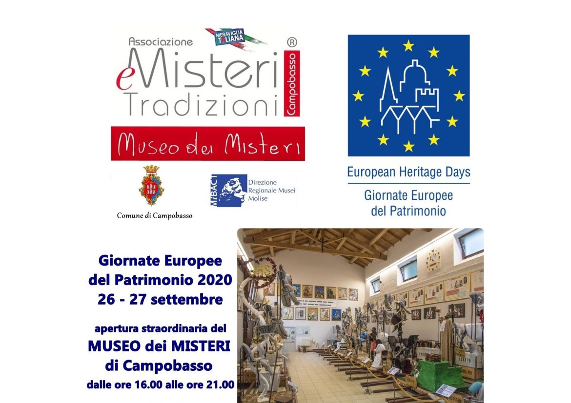 Anche quest’anno il Museo dei Misteri ha aderito alle Giornate Europee del Patrimonio 2020, nei giorni di sabato 26 e domenica 27 settembre, con l’apertura straordinaria del Museo dalle ore 16.00 alle 21.00. Per le misure di prevenzione Covid-19, l’ingresso sarà contingentato e bisogna registrarsi all’entrata, indossare la mascherina e mantenere la distanza di almeno un metro.