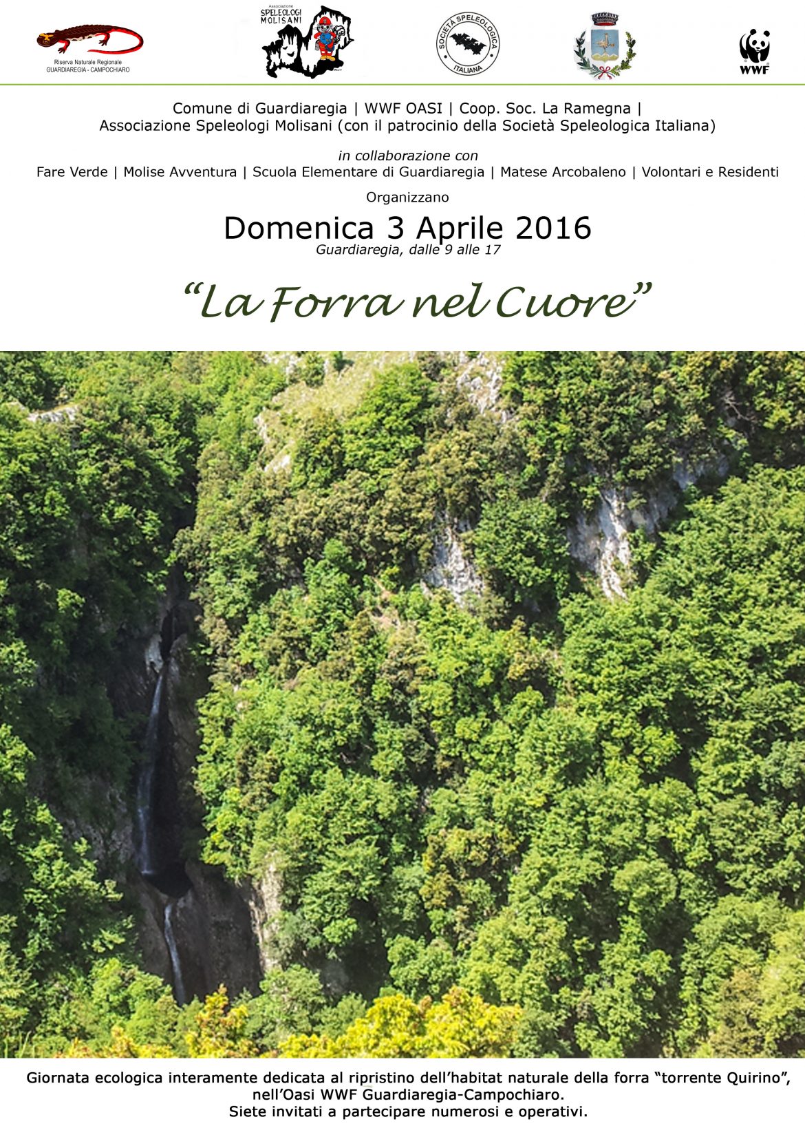 L’Ente gestore della Riserva, ringrazia anticipatamente la Cooperativa La Ramegna di Guardiaregia per il coordinamento della giornata e tutti i volontari del WWF Molise, di Matese Arcobaleno, Fare Verde, Molise Avventura, i bambini della Scuola elementare di Guardiaregia e tutti coloro che vorranno unirsi domenica 3 aprile nella giornata ecologica “La Forra nel Cuore”.