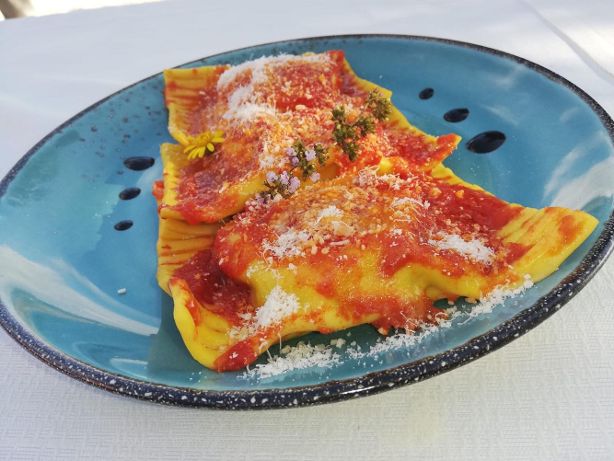 Il famoso e prelibato raviolo “grande quanto il palmo della mano”, spesso e irregolare, con un ripieno gustoso di formaggio, pancetta, bieta, macinato e spezie, condito con un sugo di capra, è stato così presentato all’Italia intera nella Locanda dello Chef Stefano Rufo, vincitore della Prova del cuoco nel Campanile delle regioni italiane, e realizzato a mano dalla mamma Anna Iannetta, facendo deliziare il palato dei presenti e dell’inviato della Isoardi, Ivan Bacchi.