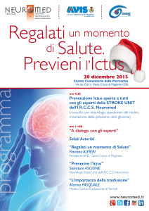 L’Istituto Neuromed promuove da sempre momenti di informazione e di prevenzione dedicati a questa patologia. Domenica, 20 dicembre, gli specialisti dell’Istituto di Pozzilli saranno a Santa Croce di Magliano a partire dalle9:30 in Via dei Carri. Oltre al dialogo con i medici ci sarà uno stand dedicato alla prevenzione che offrirà gratuitamente un consulto con il neurologo, misurazione della pressione, stick glicemia e la somministrazione del questionario del rischio Ictus.