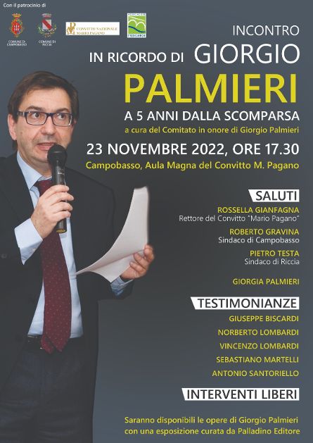 La manifestazione patrocinata dal Comune di Campobasso, dal Comune di Riccia e dal Convitto Nazionale Mario Pagano si svolgerà proprio presso l’Aula Magna del Convitto di Campobasso, mercoledì 23 novembre, alle ore 17.30.