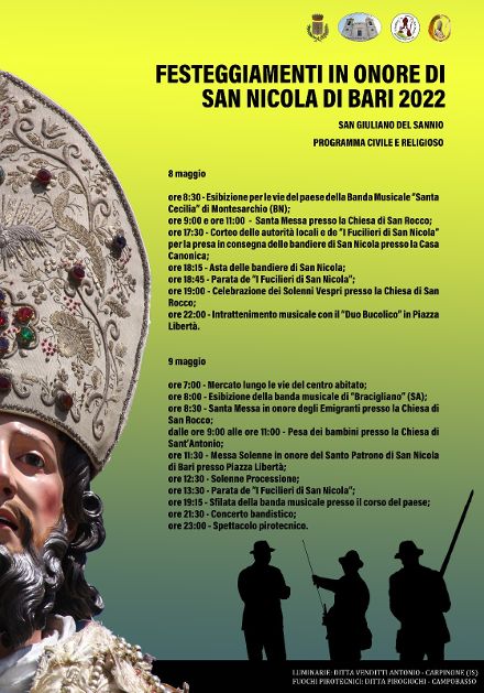 Il potere della memoria e il Fuciliere che con il suo archibugio rende onore al suo Santo. Amore incarnato e lacrime di gioia nel sussulto dei fucili per San Nicola re della sua tradizione popolare in una celebrazione identitaria, alle stanze del folklore, alla sublime profondità dello spirito; ai vicoli di nuovo pieni, alla meraviglia dei più piccoli dei quali San Nicola è sublime protettore, al groppo in gola dei più grandi, a quei passi cadenzati dei Fucilieri. Più di una catarsi, più di una semplice riappropriazione, perché San Giuliano del Sannio torna a riabbracciare la sua storia, a disegnare ancora una volta i contorni del suo destino.