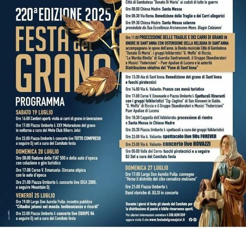 In un’epoca in cui i riti tradizionali rischiano di essere svuotati di senso, la Festa del Grano di Jelsi resiste come un baluardo culturale e spirituale, capace di raccontare l’anima di un popolo attraverso il gesto semplice e potente del dono del grano. Un rito che unisce, commuove, educa. E che ogni anno si rinnova coerentemente.
