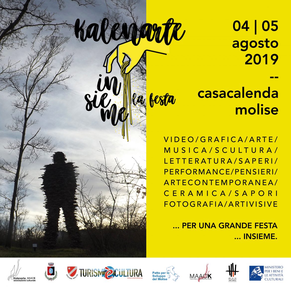 Lunedì 5 agosto in località Terravecchia, tra le pieghe del MAACK, all’ombra di Efesto di Hidetoshi Nagasawa e delle tante altre opere contemporanee presenti, a partire dalle ore 18:00 si terrà la festa di Kalenarte in cui gli artisti avranno modo di ritrovarsi e ritrovare gli abitanti di Casacalenda in una serata di condivisione e amicizia.