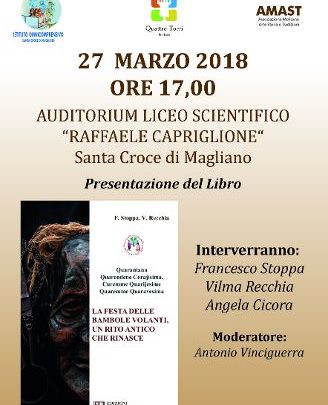 Si terrà martedì 27 marzo, alle 17.00, a Santa Croce di Magliano, presso l’auditorium del Liceo Scientifico “Raffaele Capriglione”, la presentazione del libro “La festa delle bambole volanti, un rito antico che rinasce”.