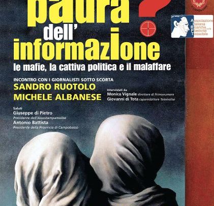 Se ne parlerà nell’incontro pubblico ‘Chi ha paura dell’informazione?’, organizzato dall’Associazione della Stampa del Molise, sabato 23 Marzo 2019, alle ore 17,00, nella sala della Costituzione, a Campobasso. Ospiti d’eccezione Sandro Ruotolo e Michele Albanese, due dei giornalisti italiani sotto scorta per le loro inchieste sugli affari e le collusioni della camorra e della ‘ndrangheta.