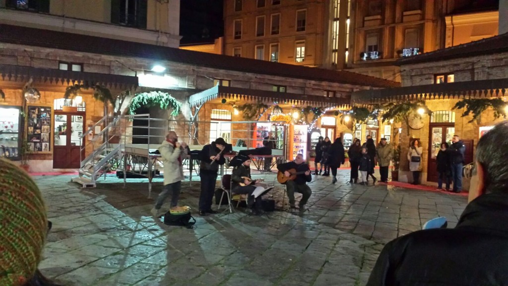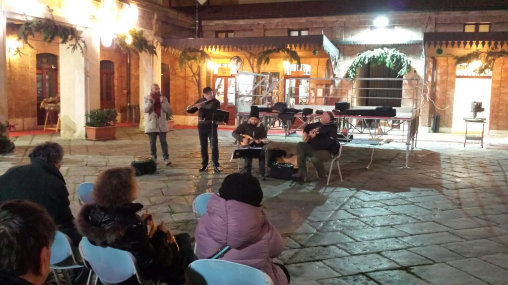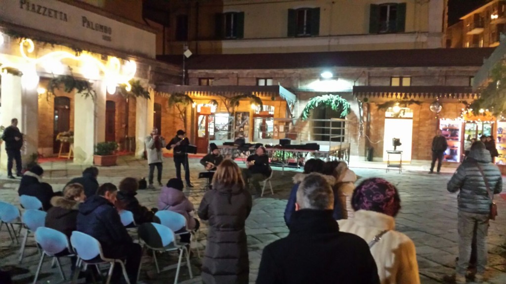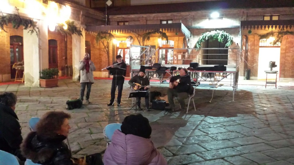 La musica popolare del Quartino Panzillo (versione ridotta rispetto al gruppo completo ‘Piccola Orchestra Popolare C.O. Panzillo’) ha animato, nel pomeriggio di ieri, mercoledì 30 dicembre 2015, l’elegante e suggestiva Piazzetta Palombo.