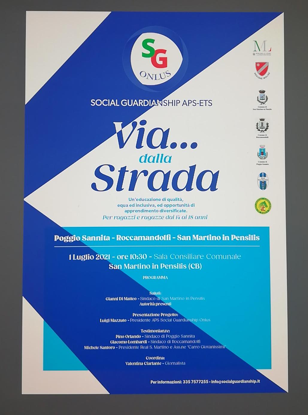 Questo è l’obiettivo dell’associazione Social Guardianship Onlus, nata a Isernia pochi mesi fa per promuovere i diritti umani e sociali tramite iniziative di ampio respiro culturale, che spazino dalla scienza all’istruzione per arrivare allo sport. Alcune di queste finalità sono racchiuse in ‘Via dalla strada’, progetto che ha ottenuto un finanziamento secondo gli Accordi di programma anni 2019 e 2020 sottoscritti tra il Ministero del Lavoro e delle Politiche Sociali e la Regione Molise, ai sensi degli articoli 72 e 73 del D.Lgs. n. 117/2017, Codice del Terzo Settore e che vede la partnership dei Comuni di San Martino in Pensilis, Roccamandolfi e Poggio Sannita.