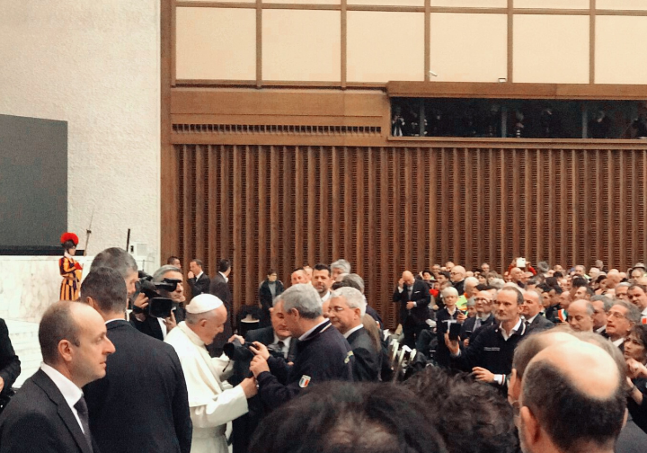 Presente anche l’assessore regionale alla Protezione Civile, Nicola Cavaliere, all’udienza di questa mattina, sabato 22 dicembre 2018, nell’aula Paolo VI in Vaticano con Papa Francesco.