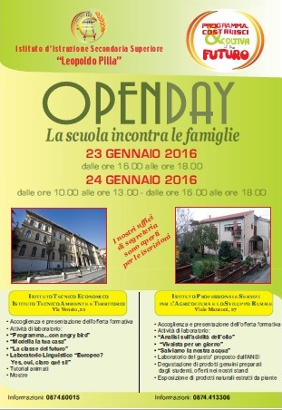 Tutto pronto al “Leopoldo Pilla” di Campobasso per l’Open Day. L’evento è in programma il prossimo 23 e 24 gennaio sia nella sede di Via Veneto, che ospita l’Istituto Tecnico Economico e l’Istituto Tecnico Ambiente e Territorio, sia in viale Manzoni nella sede dell’Istituto Professionale Servizi per l’Agricoltura e lo Sviluppo Rurale.