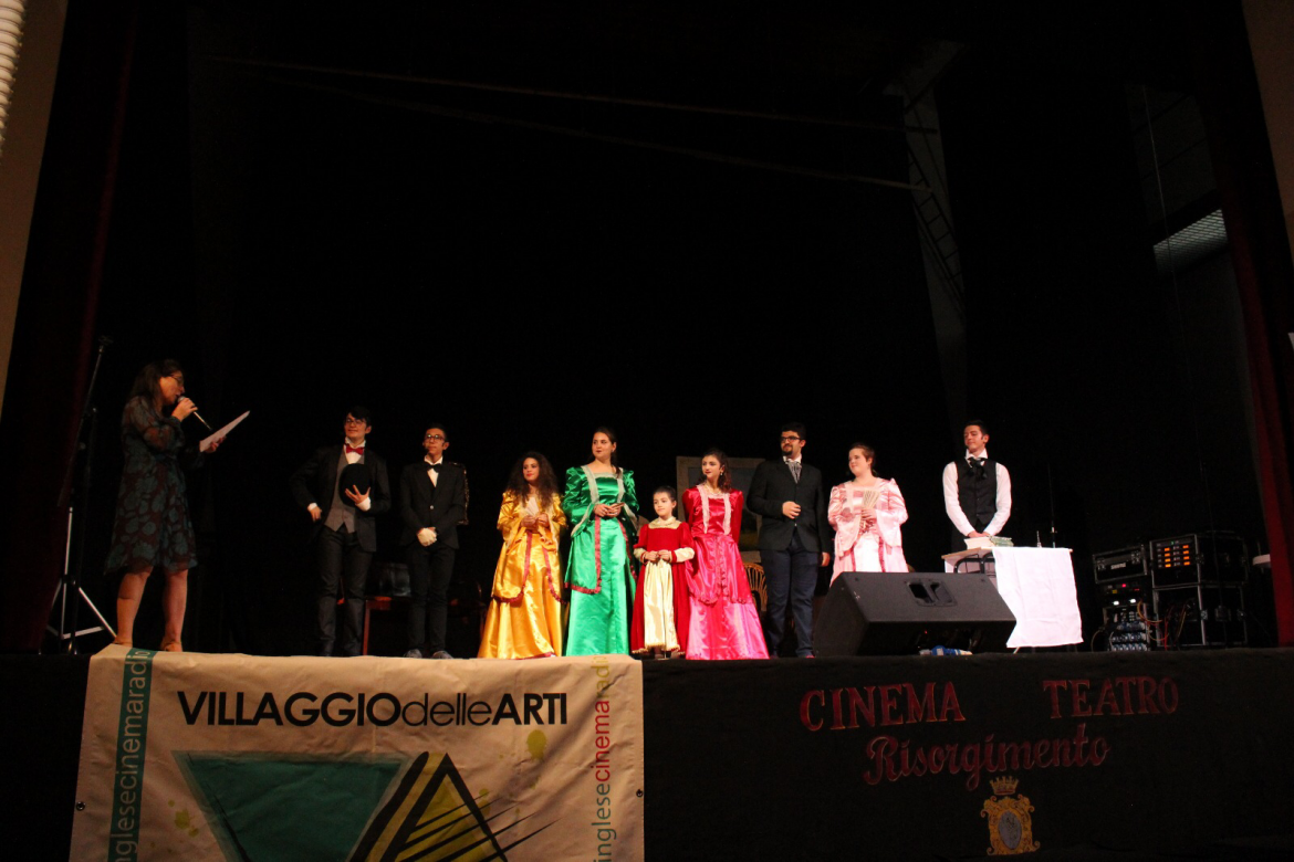 “Benvenuti a teatro. Dove tutto è finto ma niente è falso”. Dopo questa profonda citazione e dopo gli interventi di ringraziamento del sindaco di Larino, Vincenzo Notarangelo e del Dirigente Scolastico, Antonio Vesce, la giornata è iniziata con sketch comici e di attualità interpretati dagli allievi del “Piccolo laboratorio teatrale” del Villaggio delle Arti; piccoli ma grandi e abili attori con disinvoltura e audacia hanno allietato il pubblico con battute e numeri di giocoleria. Successivamente le allieve del “Corso di recitazione e dizione” con molta destrezza hanno trattato temi come il bullismo, la famiglia e la mafia, attraverso una rassegna di monologhi e dialoghi teatrali con l’accompagnamento musicale dei maestri del Villaggio. Tutto ciò ha portato il pubblico a momenti di riflessione ricchi di interesse e commozione.