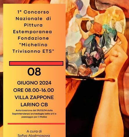 Nella suggestiva cornice del Parco Archeologico di Villa Zappone sabato 8 giugno dalle ore 8 alle 16 si terrà il 1° concorso nazionale di pittura Estemporanea sul tema della solidarietà, principio fondamentale dello Statuto della Fondazione Michelino Trivisonno ETS, istituita nel Maggio 2013 a Larino.