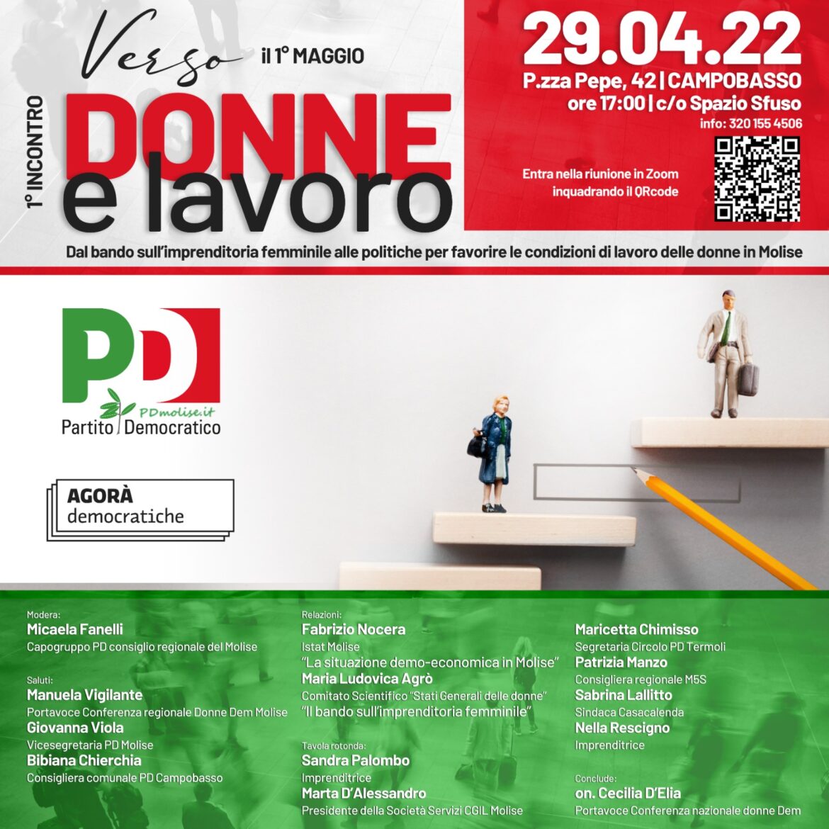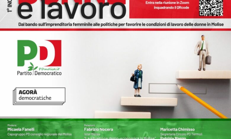 Un primo incontro dal titolo “DONNE E LAVORO. Dal bando sull’imprenditoria femminile alle politiche per favorire le condizioni di lavoro delle donne in Molise” è in programma a fine mese e sarà dedicato all’occupazione femminile. A questo si aggiungerà l’evento del 12 maggio che farà il punto sui giovani.