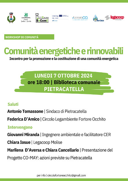 Detta misura operativa sarà presentata, lunedi 7 ottobre alle ore 18,00, durante l’incontro per la promozione e costituzione di una comunità energetica territoriale.