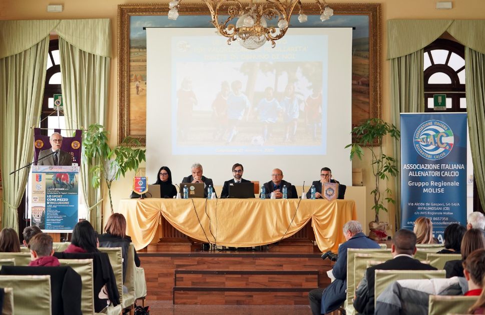 Si è tenuto ieri, lunedì 21 novembre 2022, presso l’Aula Magna del Convitto Nazionale Mario Pagano di Campobasso, l’incontro organizzato dal Lions Club Campobasso sul Tema di Studio Distrettuale a.s. 2020/2021 ‘Lo Sport come mezzo d’inclusione’, moderato dal Past President del Lions Club Campobasso e Presidente Regionale AIAC Molise, Stefano Maggiani, che ha visto gli interventi del Presidente AIAC Onlus, Marcello Mancini, del Segretario di Aiac Onlus, Tania Busetto (Past President del Lions Club Schio), del Vice Presidente Vicario del C.R. Molise FIGC LND, Miguel Mastrangelo, del Direttore Resp.le di Unisport per Unimol, Marco Sanginario.