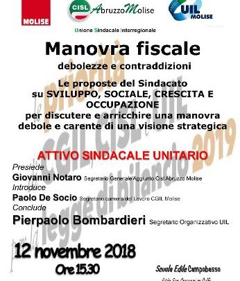 Manovra fiscale: Cgil, Cisl e Uil convocano gli Attivi unitari sindacali a Campobasso