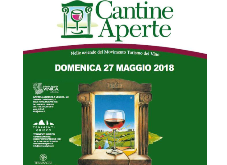 Le aziende molisane aderenti al Movimento Turismo del Vino, domenica 27 maggio 2018 apriranno le porte delle loro cantine in un ideale percorso segnato dal vino ed offriranno la possibilità di fare un’esperienza unica alla scoperta di un paesaggio collinare ad alta vocazione per una produzione di grande qualità con le DOC Biferno, Molise, Tintilia e l’IGT Terre degli Osci.