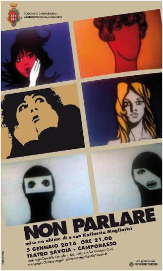 “Non parlare” è lo spettacolo che andrà in scena martedì 5 gennaio 2016 al Teatro Savoia di Campobasso, promosso dall’assessorato alla cultura del Comune di Campobasso e rientrante nel cartellone “Natale in… Comune”.