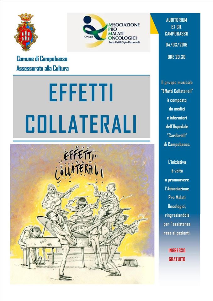 La mostra non è stata l’unica recente iniziativa dell’associazione. Venerdì 4 marzo 2016, infatti, è in programma un altro appuntamento voluto dall’assessorato alla Cultura di Palazzo San Giorgio: il concerto della band “Effetti collaterali” composta da medici ed infermieri del “Cardarelli”.