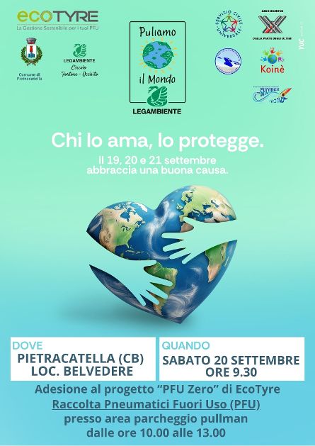 Un cuore che stringe il pianeta: è l’immagine scelta per la campagna 2025 di Puliamo il Mondo, iniziativa che da oltre trent’anni accompagna i cittadini italiani in un gesto semplice e al tempo stesso denso di significato. Pietracatella, ancora una volta, non resta a guardare e rinnova la propria adesione alla storica mobilitazione di Legambiente.