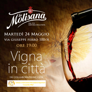 L’Istituto d’Istruzione Secondaria Superiore “Leopoldo Pilla” di Campobasso in collaborazione con il pastificio ‘La Molisana’ organizza per domani, martedì 24 maggio alle 19, l’evento Vigna in Città. Durante la manifestazione, in programma nella sede dell’azienda in via Giuseppe Ferro 100/A, sarà presentato e degustato il vino “Campo~Basso” prodotto dall’azienda agricola dell’Istituto Professionale per l’Agricoltura e lo Sviluppo Rurale.