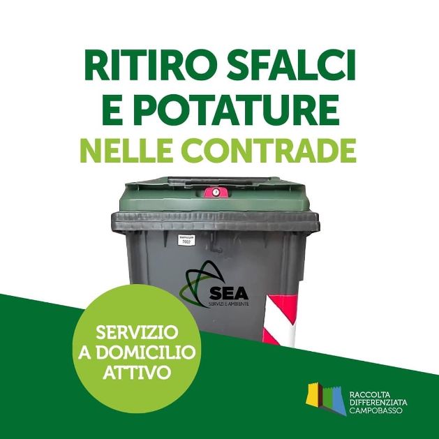 Al via, dall’11 maggio, il servizio di raccolta del materiale di scarto derivante da sfalci e potature. Come ogni anno, SEA SPA si attiva per ritirare i residui direttamente al domicilio delle utenze domestiche delle contrade della città da maggio a ottobre, il secondo e quarto giovedì del mese.