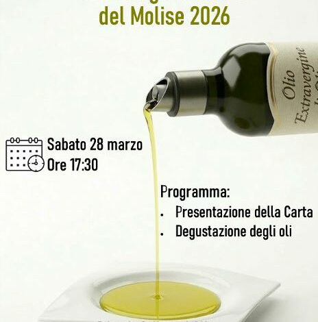 La Fondazione Italiana Sommelier è lieta di annunciare la presentazione ufficiale della Carta degli Oli Extravergine di Oliva del Molise 2026, un progetto dedicato alla valorizzazione di uno dei patrimoni agroalimentari più identitari della regione.