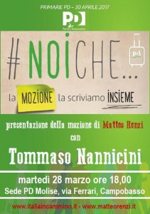 L’appuntamento con Tommaso Nannicini è per martedì 28 marzo 2017 alle ore 18 nella sede del PD in via Ferrari a Campobasso: i sostenitori molisani della mozione Renzi-Martina sono invitati a partecipare anche sarà possibile sottoscriverla direttamente alla presenza dell’estensore nazionale.