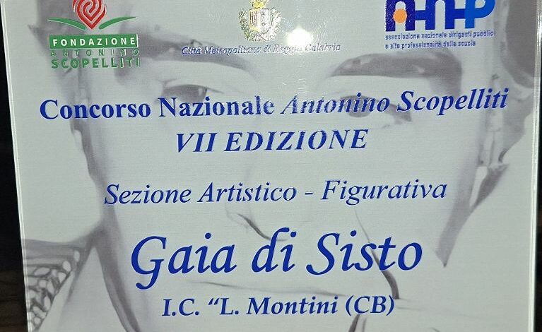 Un prestigioso riconoscimento nazionale è stato assegnato alla classe 5D della scuola primaria dell’Istituto Comprensivo “Leopoldo Montini” di Campobasso, vincitrice del primo premio della VII edizione del Concorso Nazionale “Antonino Scopelliti”, sezione artistico-figurativa, promosso dalla Fondazione Antonino Scopelliti e dedicato alla memoria del magistrato, simbolo dell’impegno per la legalità e la giustizia.