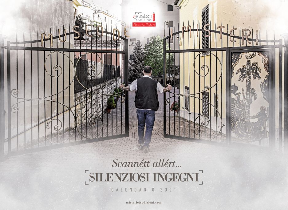 “SCANNÉTT ALLÉRT – dicono dal Museo di via Trento – è il titolo del calendario 2021, ma è soprattutto il grido del caposquadra prima di far sollevare il Mistero dai portatori, seguito da uno, due e tre. Quest’anno, con il calendario 2021, daremo l’opportunità a tutti, grazie alle foto inedite e mai realizzate prima, da Roberto de Rensis, di vedere gli Ingegni ‘nudi’ tra ferro, cuscini, cinte, bretelle e nastri. Inoltre, ci saranno le foto di ogni singolo caposquadra sopra il proprio Mistero, con pose inconsuete, uniche e anche simpatiche. Un’occasione per ammirare l’arte del Di Zinno in tutte le sue forme, che durante la sfilata sono nascoste dai costumi, dalla scenografia o dai personaggi e un omaggio ai capisquadra che portano avanti la tradizione da generazioni. Ogni Mistero, inoltre, sarà accompagnato dai versi della poesia (poi anche musicata) di Michele Buldrini, “Le Musterie dé Campuasce”, che la figlia ha donato nel Corpus Domini del 2010 all’Associazione ed esposta al Museo, oltre ad una didascalia con il numero complessivo dei personaggi, il numero dei portatori, il peso senza personaggi e l’altezza dalla base”.