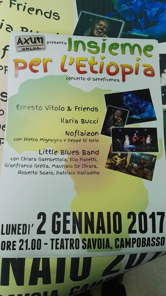 Appuntamento con la grande musica alle 21 di questa sera, lunedì 2 gennaio 2016, al Teatro Savoia di Campobasso. Per il cartellone degli eventi natalizi dell’amministrazione comunale, ‘Natale In…cantato’, è in programma il concerto ‘Insieme per l’Etiopia, Ernesto Vitolo&Friends’, nell’ambito del “Progetto Reggae 4 Shashamene”, a cura dell’AXUM.