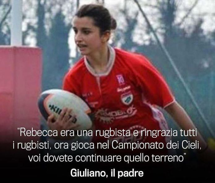 Il rugby italiano è in lutto e la prossima domenica su tutti i campi e in tutte le competizioni che si svolgeranno sotto l’egida FIR, verrà osservato un minuto di silenzio per ricordare la giovanissima Rebecca, una rugbista che aveva ancora tanto da correre e placcare e che lascia un vuoto enorme non solo nella propria famiglia e nella propria società di appartenenza ma anche nella comunità estesa dei rugbisti che sanno di affrontare ogni domenica un gioco, uno scontro con le proprie paure che si riesce a vincere solo unendo le forze a quelle degli altri, anche a quelle dei propri avversari.