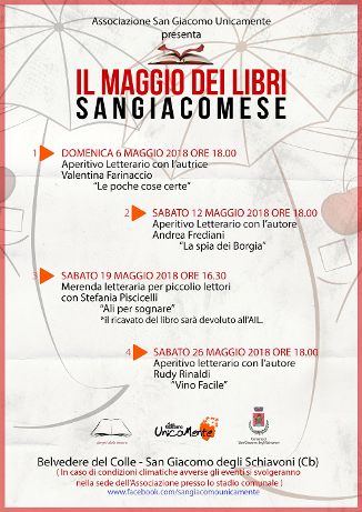 Qui di seguito il resto del programma de “Il Maggio dei Libri Sangiacomese”: