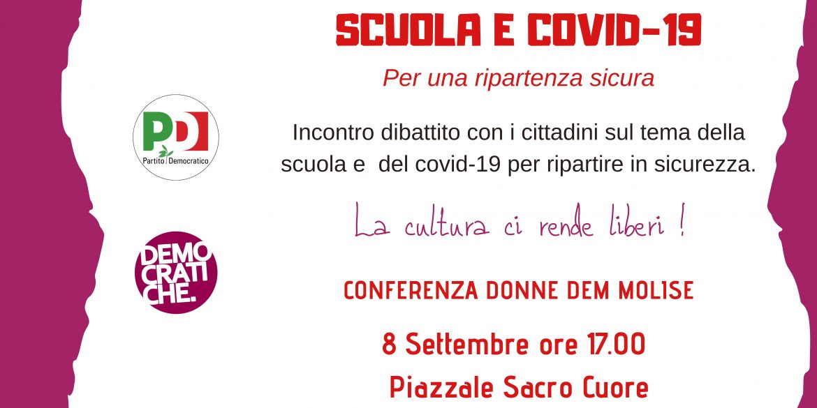 Nell’ambito delle iniziative messe in campo dal Pd regionale sulla scuola, martedì 8 settembre a Termoli, presso il Piazzale del Sacro Cuore, la Conferenza delle donne democratiche del Molise, terrà un dibattito con i cittadini su ‘SCUOLA E COVID-19’.