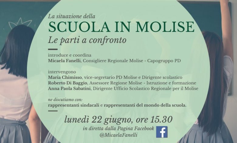 Scuola in Molise, l’evento in diretta Facebook promosso dalla consigliera Fanelli