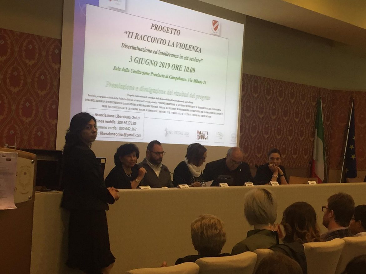 Si è tenuto nella sala della Costituzione della Provincia di Campobasso l’evento conclusivo di premiazione del progetto “Ti racconto la violenza, discriminazione ed intolleranza in età scolare”.