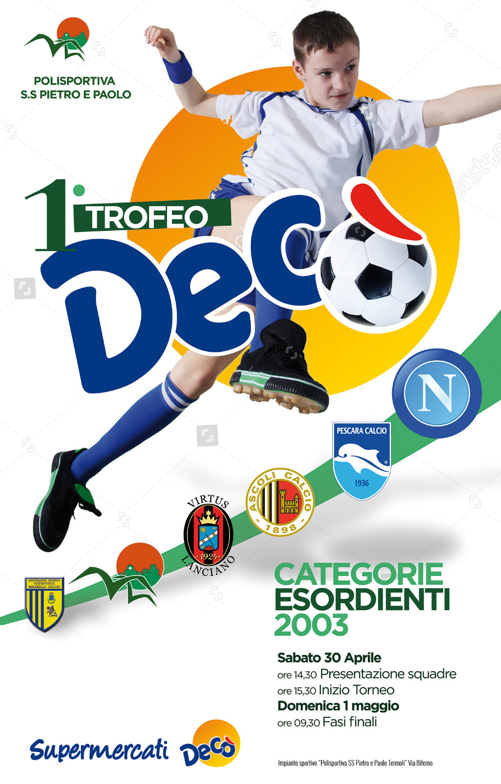 A Termoli il ponte del primo maggio è all’insegna del calcio. Grazie all’intesa tra la Polisportiva San Pietro e Paolo e i supermercati Deco’ sabato 30 aprile e domenica primo maggio 2016 si terrà il primo trofeo di calcio “Deco’”. Squadre importanti del panorama nazionale saranno nella città ariatica per contendersi il trofeo sul sintetico della Polisportiva San Pietro e Paolo. Protagonisti saranno i ragazzi del 2003 della categoria Esordienti.