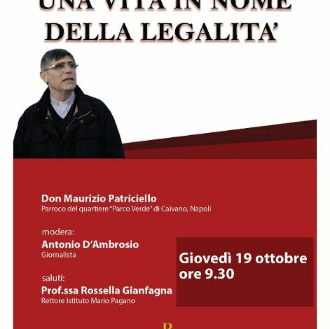 Si terrà giovedì 19 ottobre alle ore 9.30 presso l’aula magna del Convitto Mario Pagano l’incontro con Don Maurizio Patriciello, parroco nel Parco Verde di Caivano, simbolo nazionale della lotta alla Camorra e alla tutela del paesaggio inquinato dai rifiuti industriali, nella cosiddetta Terra dei Fuochi.