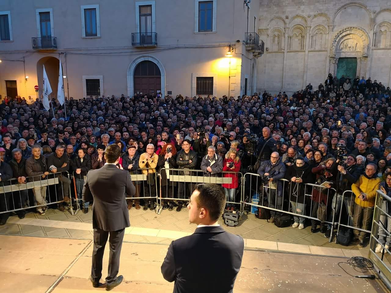 Il presidente della Camera dei Deputati, Roberto Fico, ha dato mandato ai questori di Montecitorio di predisporre una proposta per il taglio dei vitalizi agli ex deputati. Con questa notizia il leader del Movimento Cinque Stelle, Luigi Di Maio, apre il suo incontro a Termoli. Lo fa davanti a una Piazza Duomo affollata, subito dopo l’intervento del candidato alla Presidenza della Regione Molise, Andrea Greco.