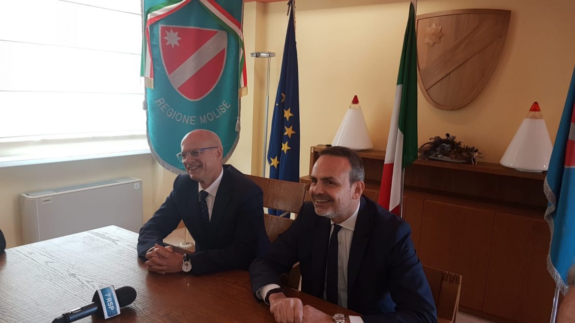 Passaggio di consegne a Palazzo Vitale tra l’ex governatore Paolo di Laura Frattura e il neo-presidente della Giunta regionale del Molise, Donato Toma. Quest’ultimo ha subito riscaldato l’inizio della settimana, confermando quanto già aveva annunciato a CBlive sabato 12 maggio.