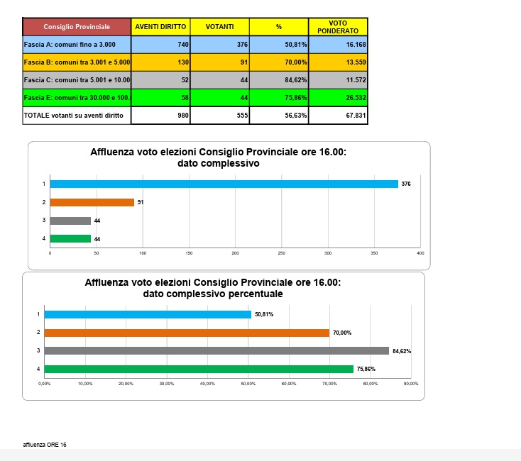 Fascia A (voto ponderato 43) 245 votanti su 740 aventi diritto al voto, pari al 33,11%