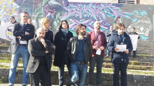 Gli esponenti del Movimento 5 Stelle in conferenza stampa allo stadio ‘Vecchio Romagnoli’