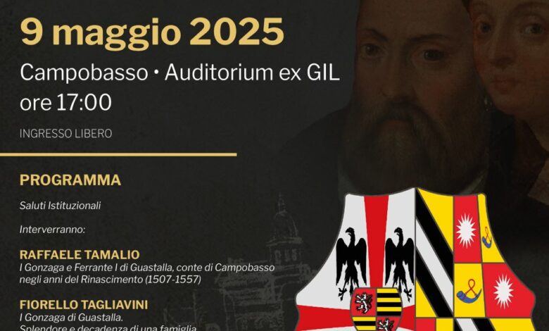 La Provincia di Campobasso, con Europe Direct Molise, convoca la stampa, a Palazzo Cannavina, a Campobasso, alle ore 11,30  di lunedì 5 maggio 2025, per presentare l’iniziativa dal titolo “I Gonzaga, Signori di Campobasso. Mantova, Guastalla e i feudi meridionali”.