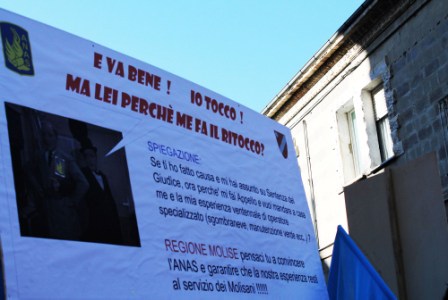 Vertenza Molise. Esattorie, 70 licenziati. Gam, 350. Molise Dati, 15. Precari della scuola, 90. Protezione Civile, 130 “lavoratori fuori”. C’è poi lo Zuccherificio, c’è l’Ittierre, c’è la Solagrital. “Servono almeno 2000 nuovi posti di lavoro” tuona dal “pulpito” Tecla Boccardo, segretario regionale della Uil Molise. Il “pulpito” è una piccola scalinata di fronte alla sede di via Genova della Regione. La platea è quella dei lavoratori precari, in cassa integrazione, licenziati, che non arriveranno mai alla pensione di questo passo. È quella dei precari del Molise. Per lo più gente adulta, non più giovane, che da un giorno all’altro, dopo una vita di lavoro e sacrifici, si ritrova in mezzo a una strada. E manifesta, urla, protesta, sventola bandiere, fischia. Con una certa compostezza, tutto sommato.