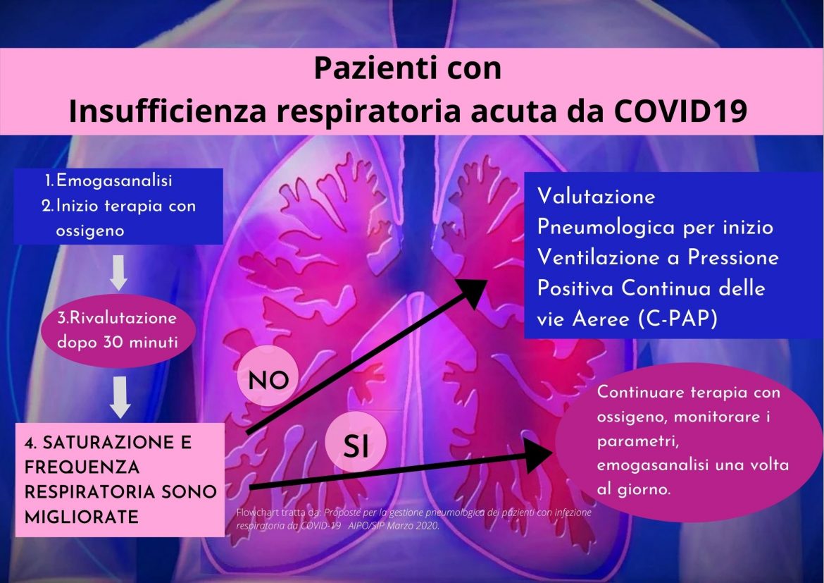 La principale manifestazione clinica dei pazienti COVID-19 è l’intensa dispnea, mancanza di fiato dovuta ad ipossia acuta, con insufficienza respiratoria. In questi pazienti gli alveoli danneggiati recepiscono poco ossigeno, provocando una riduzione della pressione arteriosa di ossigeno (PaO2) e, nei casi più gravi, una Insufficienza Respiratoria Acuta.