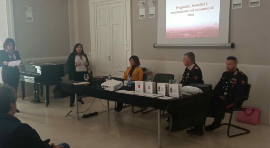 Fondamentale poi la presenza della Compagnia dei Carabinieri di Larino a cui è andato l’importantissimo compito di illustrare il funzionamento dell’etilometro e tutta la parte relativa alla guida in stato di ebrezza, ovvero tutti quei rischi connessi all’abuso di alcool che se, invece, viene consumato moderatamente può avere anche effetti benefici sulla salute. Così come hanno spiegato le biologhe nutrizioniste. “Il vino, infatti – hanno specificato nel corso dell’incontro – parte integrante dell’alimentazione mediterranea è una bevanda dai volti molteplici e contraddittori. Se da un lato facilita la convivialità e i rapporti interpersonali, dall’altro può diventare anche compagno di eccessi e pericolosi stravizi. E ciò è valido anche nell’ambito della salute, dato che il vino può essere un grande aiuto per arterie e cuore, ma anche un terribile devastatore di tutto l’intero organismo. Ecco perché un consumo di vino da basso a moderato, soprattutto di quello rosso, può essere promosso, assieme alla cultura del buon bere perché è in grado di ridurre la mortalità”.