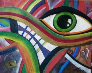 “Quest’opera si chiama ‘True Love’ e potrebbe rappresentare una sorta di autobiografia a colori. L’occhio che brilla rappresenta proprio l’amore così come il sorriso e il lucchetto finalmente aperto ai sentimenti liberi. Con questo quadro ho inaugurato anche un mio stile personale nuovo, a partire dalla pennellata diversa rispetto alle mie produzioni precedenti”.
