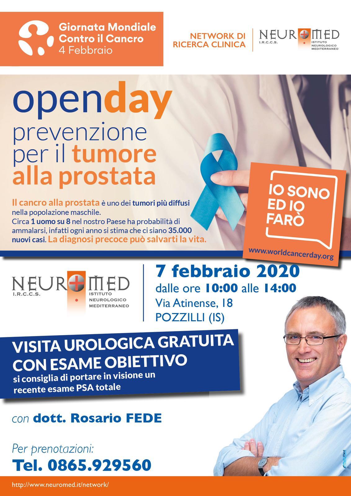In occasione della Giornata Mondiale contro il Cancro (4 febbraio 2020) il Network di Ricerca clinica Neuromed promuove una serie di eventi dedicati a screening gratuiti di prevenzione contro il tumore della prostata, uno dei tumori più diffusi nella popolazione maschile e che rappresenta circa il 20% di tutte le forme cancerose diagnosticate nell’uomo.