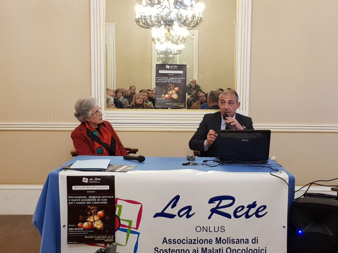 Numeri questi, che fanno riflettere sul ruolo importante dell’informazione e della prevenzione di tali patologie. Ecco perché La Rete Onlus ha inteso promuovere un incontro sul tema al quale ha preso parte il Direttore del Dipartimento di Oncologia e Chirurgo Oncologo della Fondazione Giovanni Paolo II, Fabio Rotondi. Ad accoglierlo ieri sera, 11 aprile, al Circolo Sannitico, una sala gremita. Tantissimi sono stati, infatti, anche coloro che hanno voluto rivolgere domande e curiosità sul tema, sia a Rotondi, sia al dottor Carmelo Pozzo, nuovo direttore dell’UOC di Oncologia Generale della Fondazione Giovanni Paolo II, presente all’iniziativa.