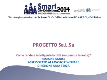 La Smart City Exhibition, che come ogni anno si terrà a Bologna dal 22 al 24 ottobre quest’ anno ha tra le sue eccellenze l’Assessorato al Lavoro della Regione Molise con la Direzione di Area III. Infatti, da qualche anno l’evento rappresenta il luogo italiano ed europeo in cui confluiscono le più avanzate realtà del vivere urbano e delle comunicazioni, proponendo un modello di partecipazione fortemente interattivo centrato non solo su attività di awareness, ma su momenti ristretti di lavoro al fine di influenzare l’opinione pubblica e i titolari di decisioni strategiche a livello locale e centrale. In particolare, nel Convegno di punta “Quale Sanità e welfare nelle città di domani” sarà illustrato dal Direttore dell’ Assessorato al Lavoro e Politiche Sociali, Alberta De Lisio, il progetto “Sa.L.Sa”, già finalista al Premio nazionale E Gov 2014, e selezionato tra tanti alla call “Come rendere intelligente una città un passo alla volta”. Welfare aziendale, medicina di prossimità, integrazione socio-sanitaria, teleassistenza.